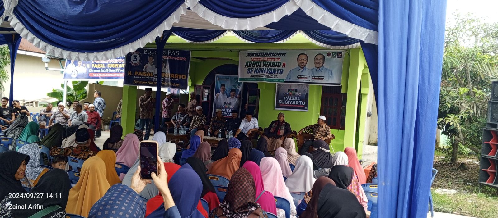 Gg. Makmur Jl. Teladan kelurahan Jayamukti, kecamatan Dumai Timur Jumat, (27/09/2024) siang menjadi arena kampanye Cawako H Paisal SKM., MARS. Rangkaian kampanye dialogis hari ketiga dilaksanakan di posko relawan 'BoloNe' sekitar Pukul 14.00 Wib.