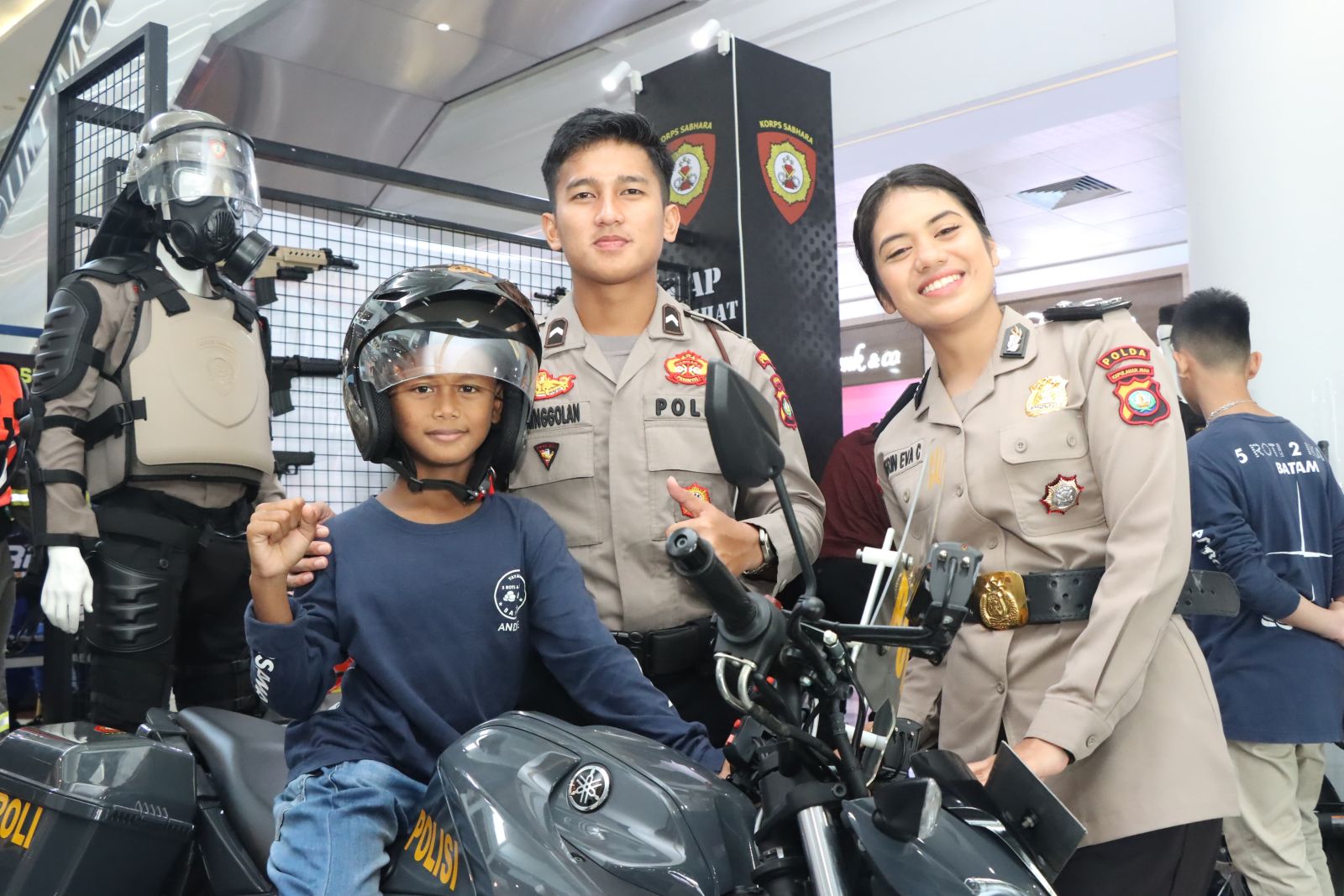 Sebanyak 60 anak dari kedua yayasan tampak antusias dan ceria mengikuti rangkaian kegiatan yang diawali dengan mengunjungi stan-stan pameran Bhayangkara Polda Kepri.