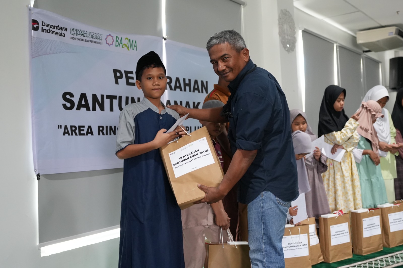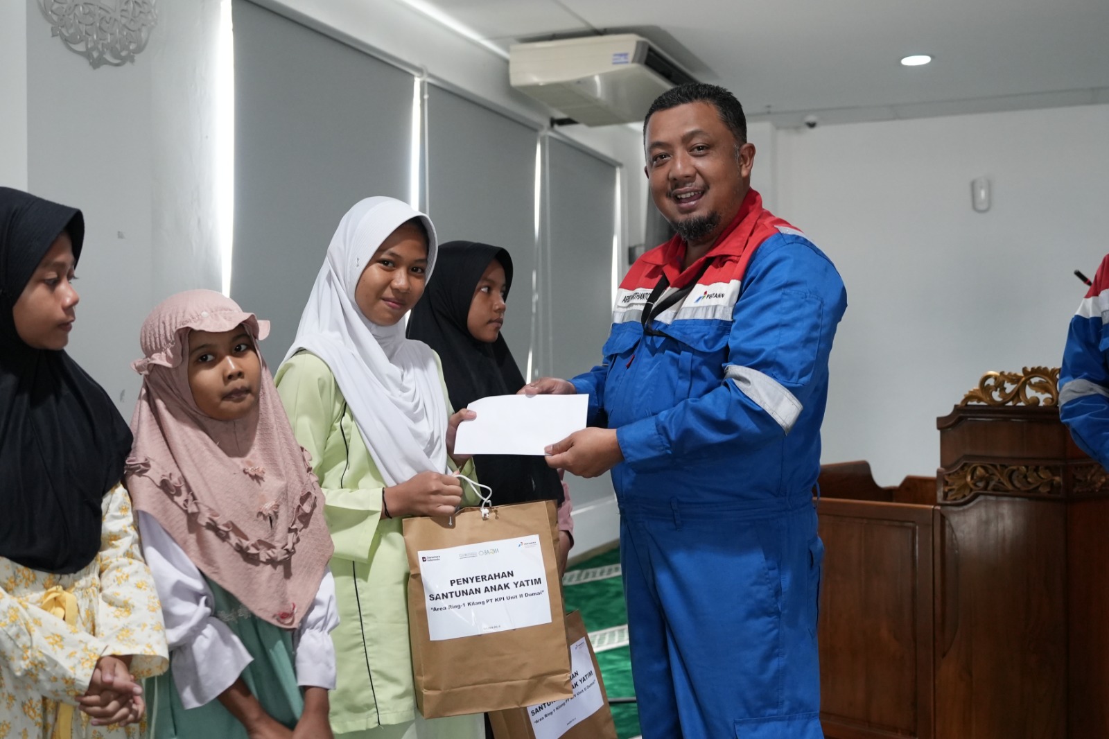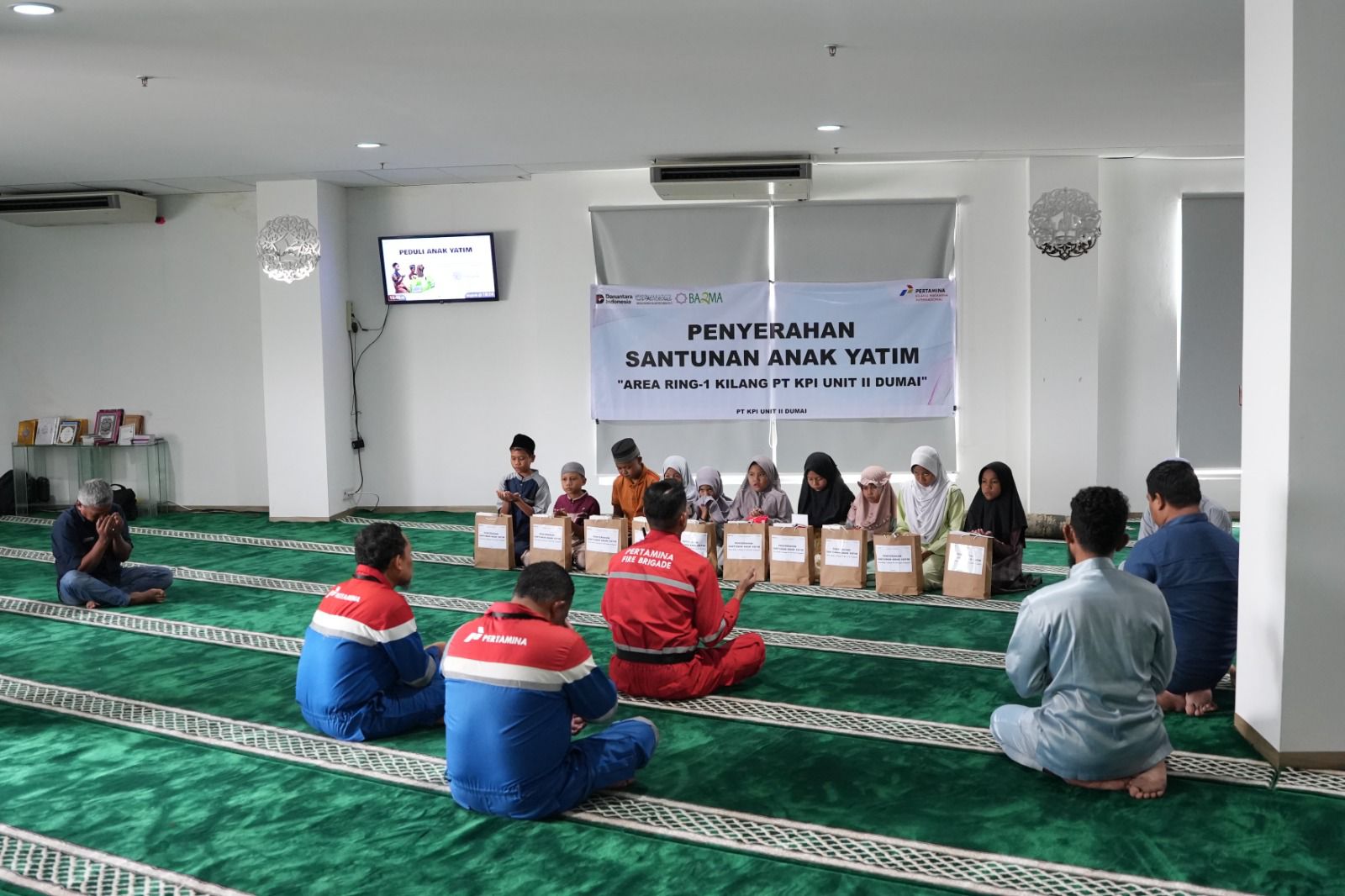 Usai memberangkatkan 36 warga dari Kelurahan Tanjung Palas, Jaya Mukti, Teluk Binjai, dan wilayah kota Dumai sekitarnya untuk mengikuti Pelatihan Dasar (Diksar) Satpam Kualifikasi Gada Pratama, PT Kilang Pertamina Internasional (PT KPI) Refinery Unit II Dumai (Kilang Pertamina Dumai) kembali menunjukkan kepedulian dan keberlanjutan sosial melalui kegiatan santunan bagi anak-anak yatim di wilayah ring 1 Perusahaan.