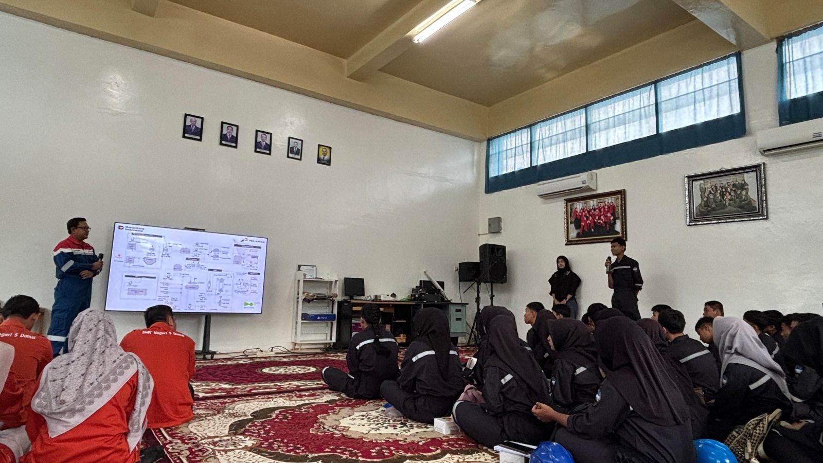 Sesi kunjungan industri SMKN 5 Dumai berlangsung secara konstruktif dan interaktif. Para siswa menunjukkan antusiasme tinggi dengan mengajukan berbagai pertanyaan terkait proses pengolahan air yang dipaparkan oleh tim WTP Bukit Datuk Kilang Pertamina Dumai. Antusiasme peserta semakin meningkat melalui sesi kuis yang mengulas kembali materi yang disampaikan. Selain itu, mereka juga diajak melihat langsung area tangki penampungan air serta unit-unit pendukung lainnya untuk mendapatkan pemahaman yang lebih komprehensif.