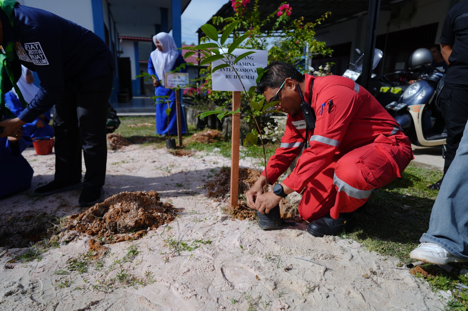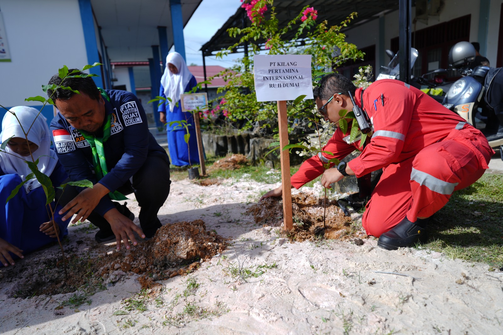Dalam rangka memperingati Hari Pohon Sedunia, PT Kilang Pertamina Internasional (PT KPI) Refinery Unit II Dumai (Kilang Pertamina Dumai) kembali menunjukkan aksi nyata terhadap komitmen pelestarian lingkungan dengan berpartisipasi dalam aksi penanaman pohon serentak di halaman SMPN 20 Dumai, Kelurahan Mundam, Kecamatan Medang Kampai, Jumat (21/11). Kegiatan ini sekaligus mendukung upaya meningkatkan ruang hijau dan edukasi lingkungan di lingkungan sekolah.