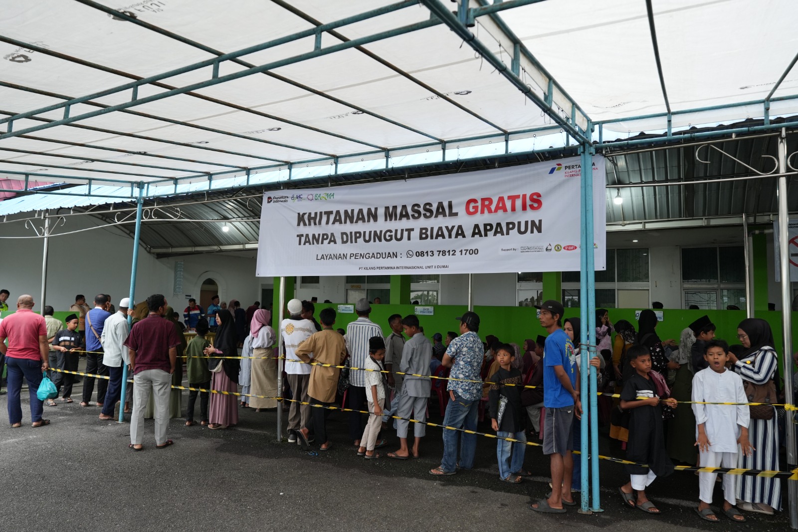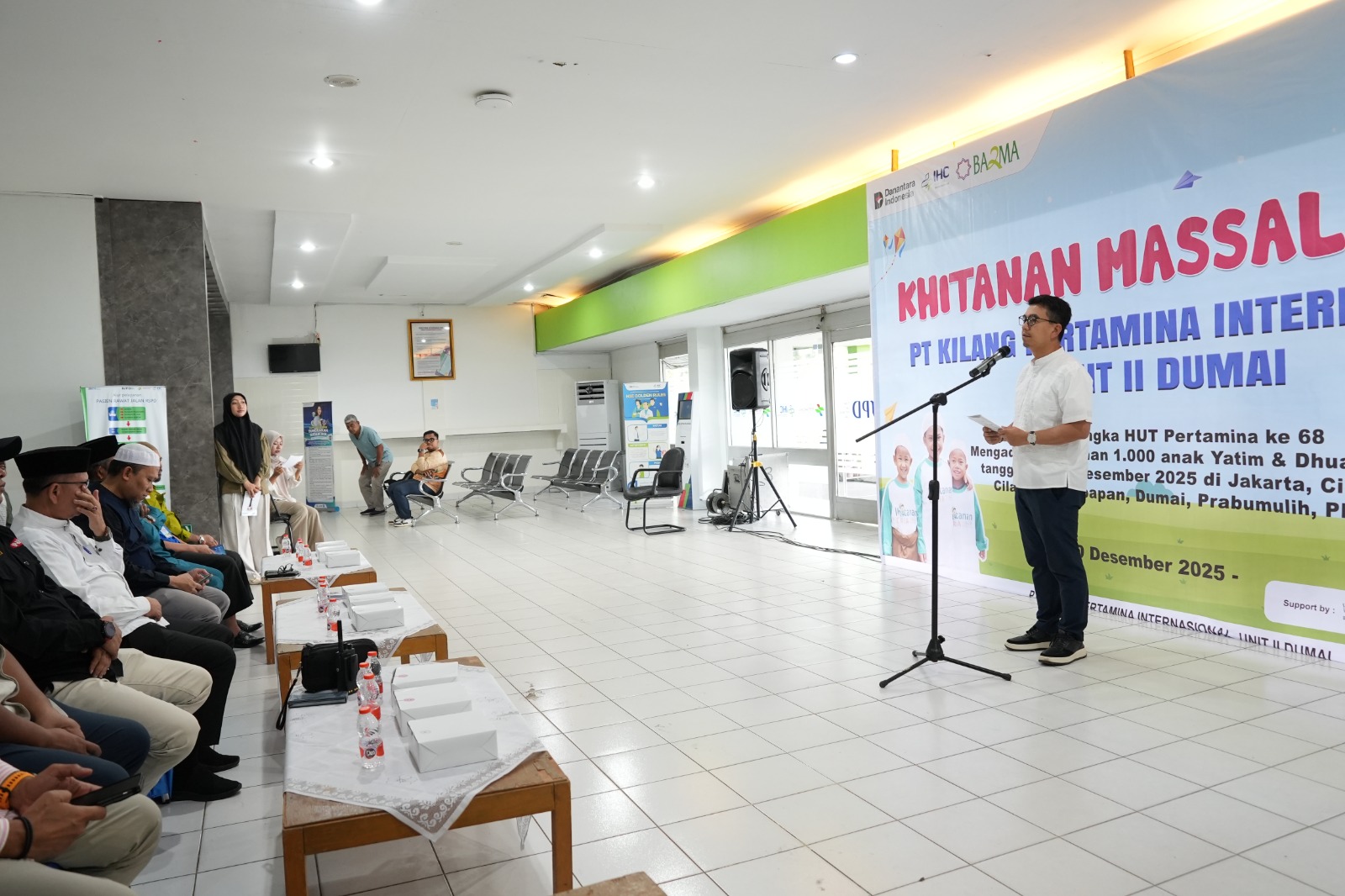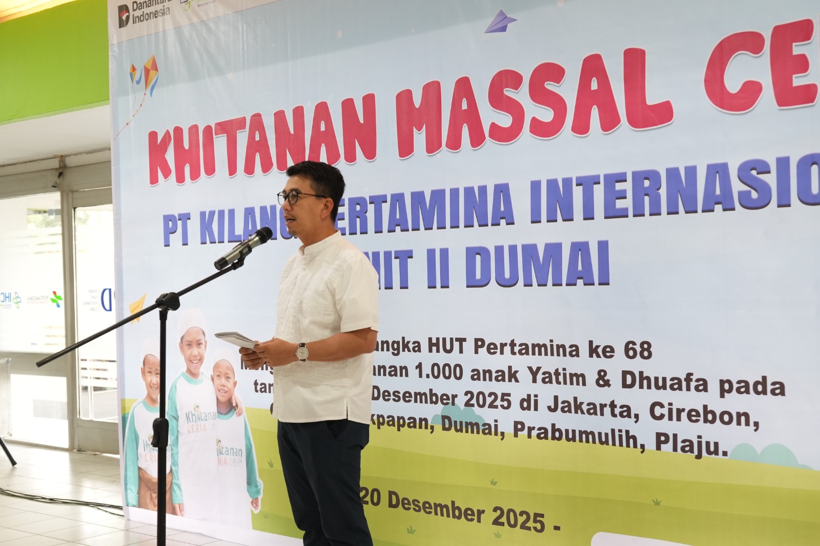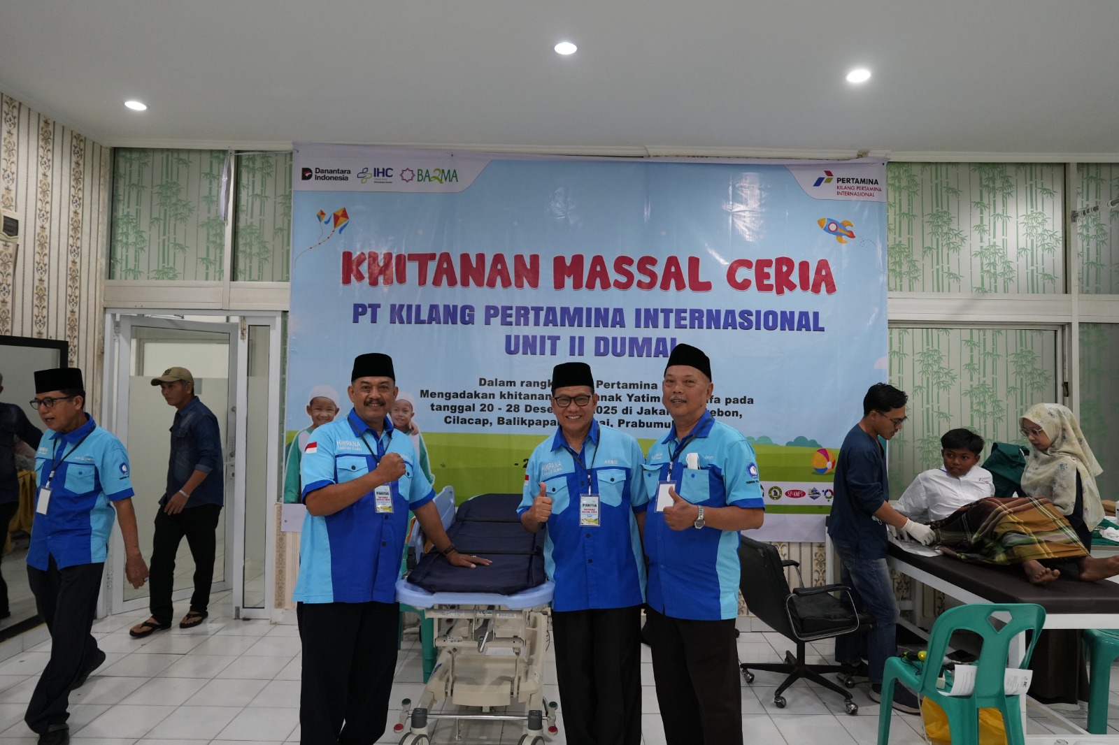 “Dalam rangka HUT ke-68 Pertamina, BAZMA Pertamina menyelenggarakan Khitanan Massal Ceria secara serentak pada 20–28 Desember 2025 di beberapa wilayah operasi, antara lain Jakarta, Cilacap, Cirebon, Balikpapan, Dumai, Plaju, dan Prabumulih. Khusus di Kota Dumai, kegiatan ini diikuti oleh 200 anak yang berasal dari berbagai kelurahan,” jelas Aziz.