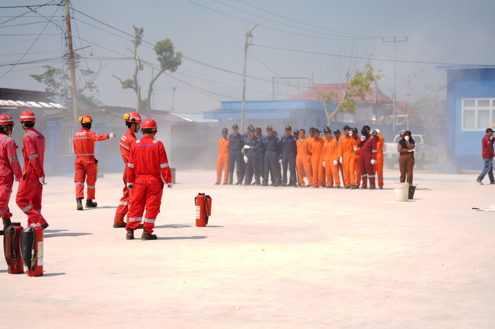 Sesi materi kemudian ditutup dengan pembekalan penanganan keadaan darurat kebakaran. Peserta diperkenalkan pada konsep segitiga api yang terdiri dari oksigen, panas, dan bahan mudah terbakar sebagai dasar pencegahan kebakaran. Kegiatan dilanjutkan dengan praktik penggunaan Alat Pemadam Api Ringan (APAR), sehingga pemahaman yang diperoleh tidak hanya bersifat teoritis, tetapi juga aplikatif.