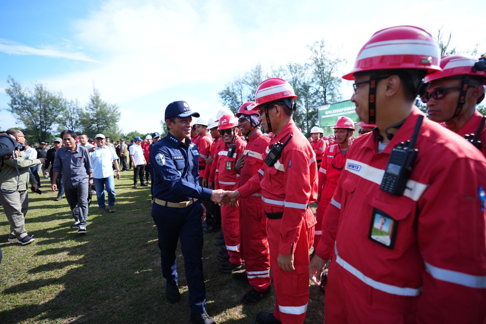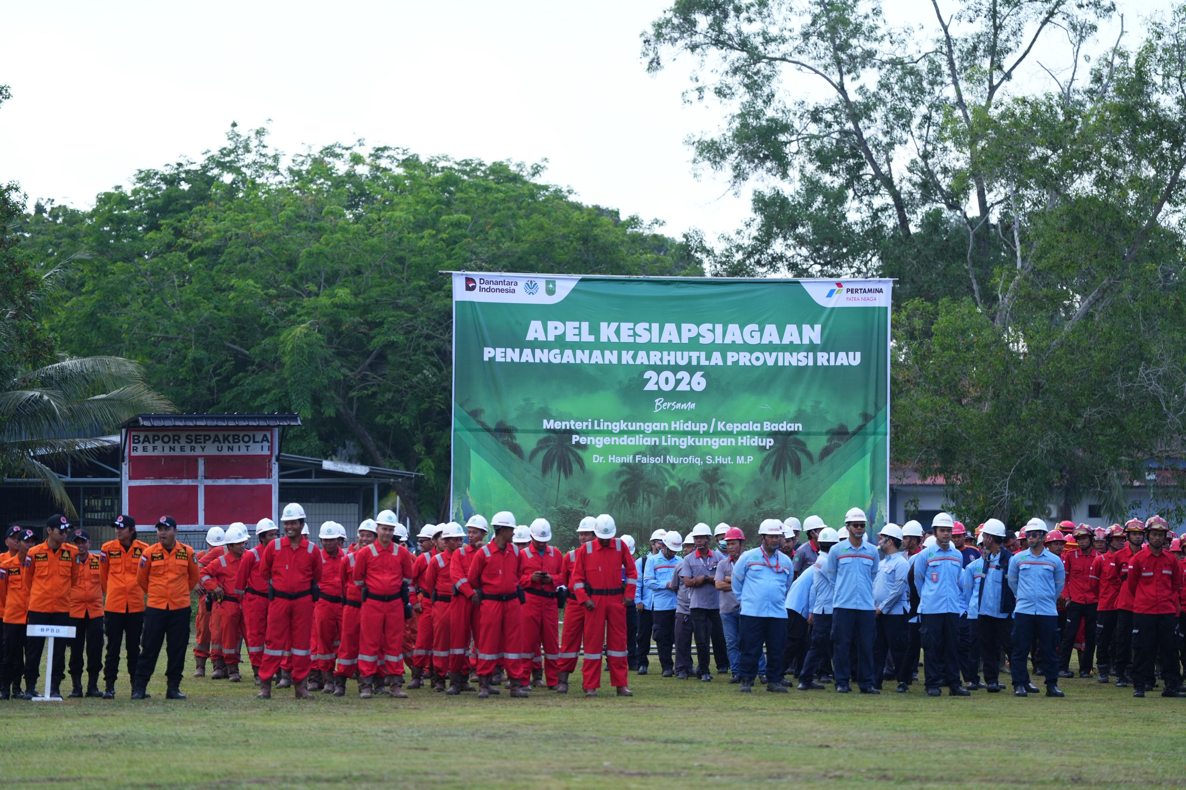 PT Pertamina Patra Niaga Refinery Unit Dumai (Kilang Pertamina Dumai) menegaskan komitmennya dalam kesiapsiagaan mendukung pemerintah dalam upaya mitigasi pengendalian Kebakaran Hutan dan Lahan (Karhutla) di Kota Dumai. Komitmen ini dibuktikan lewat dukungan penuh Kilang Dumai sebagai tuan rumah pelaksanaan Apel Siaga Pengendalian Karhutla Tahun 2026 di Dumai yang dilaksanakan di Lapangan Bapor Komplek Perumahan Pertamina (Komperta) Bukit Datuk, Minggu (26/4).