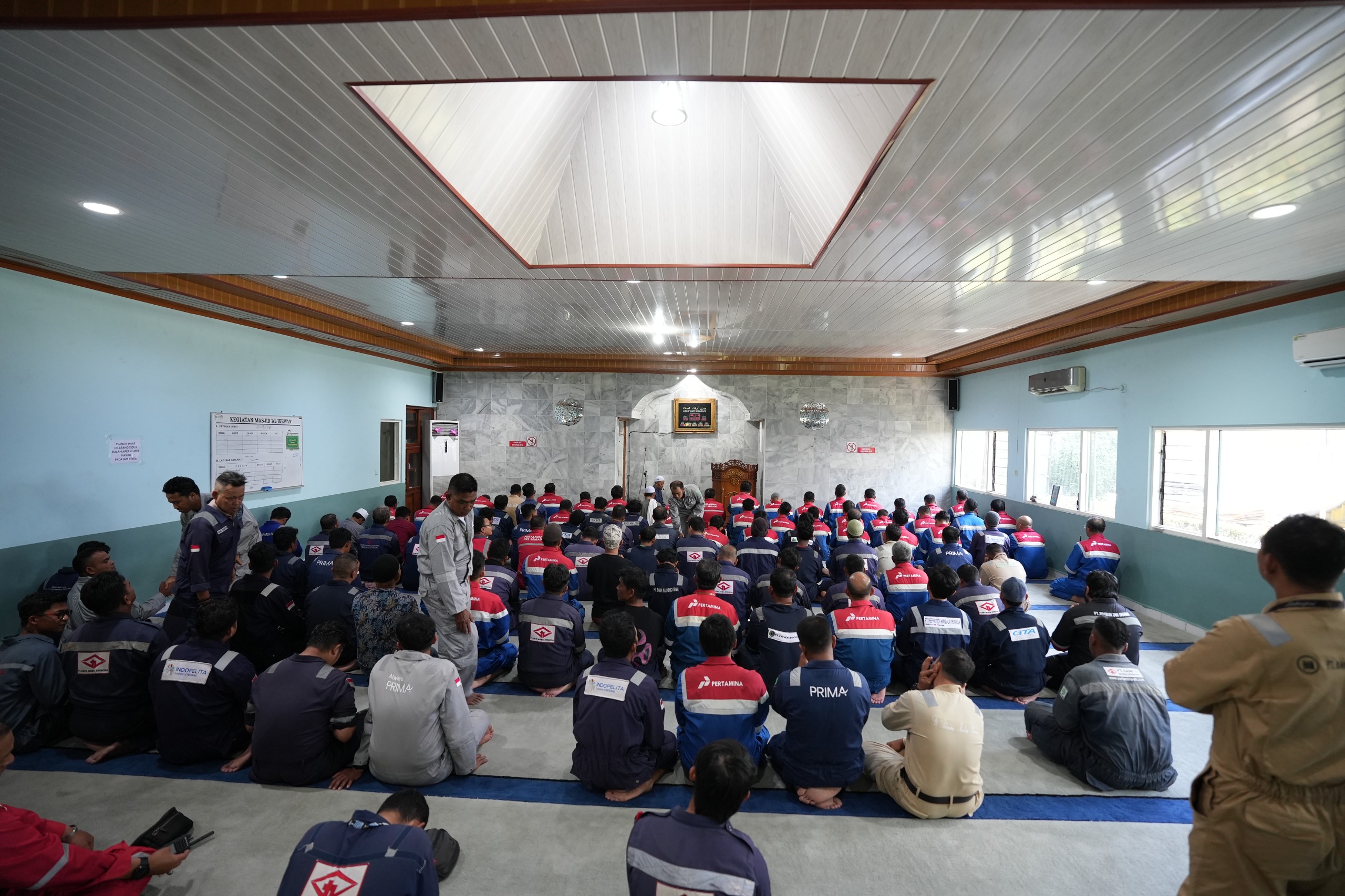 Menjelang pelaksanaan TA Mayor 2026, Pertamina Patra Niaga Kilang Dumai menggelar doa bersama yang diikuti oleh seluruh pekerja, mitra kerja, serta pekerja TA di Masjid Al-Ikhwan, Kamis (30/4). Kegiatan diawali dengan pembacaan Surat Yasin, dilanjutkan dengan salat Zuhur berjamaah sebagai bentuk ikhtiar spiritual dalam menyongsong pelaksanaan pekerjaan lima tahunan tersebut.
