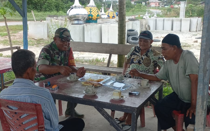 Babinsa Sungai Sembilan Jalin Komsos dengan Tokoh Masyarakat Basilam Baru
